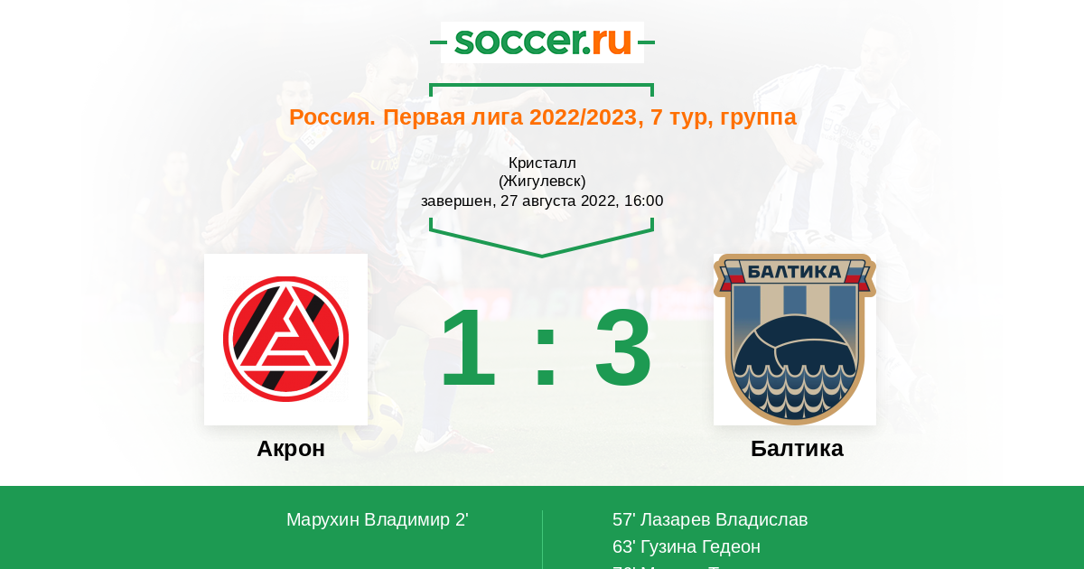 Протокол матча Акрон против Балтика