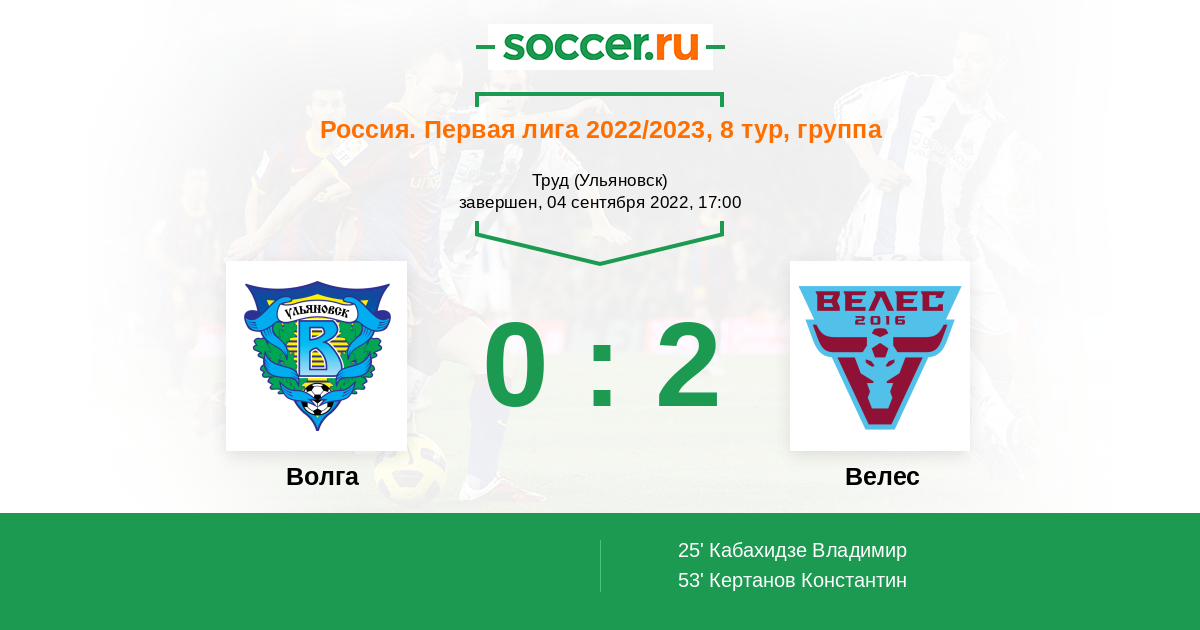 Протокол матча Волга против Велес