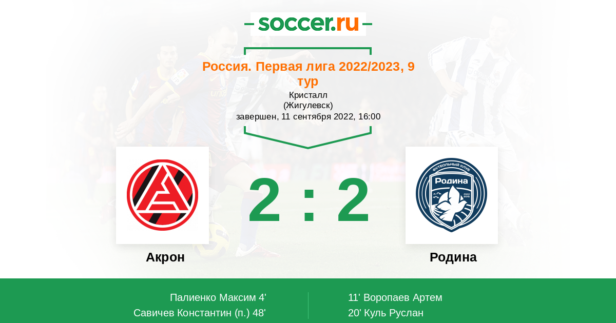 11' (1:1) Воропаев Артем (36) (Гордюшенко Астемир (72))