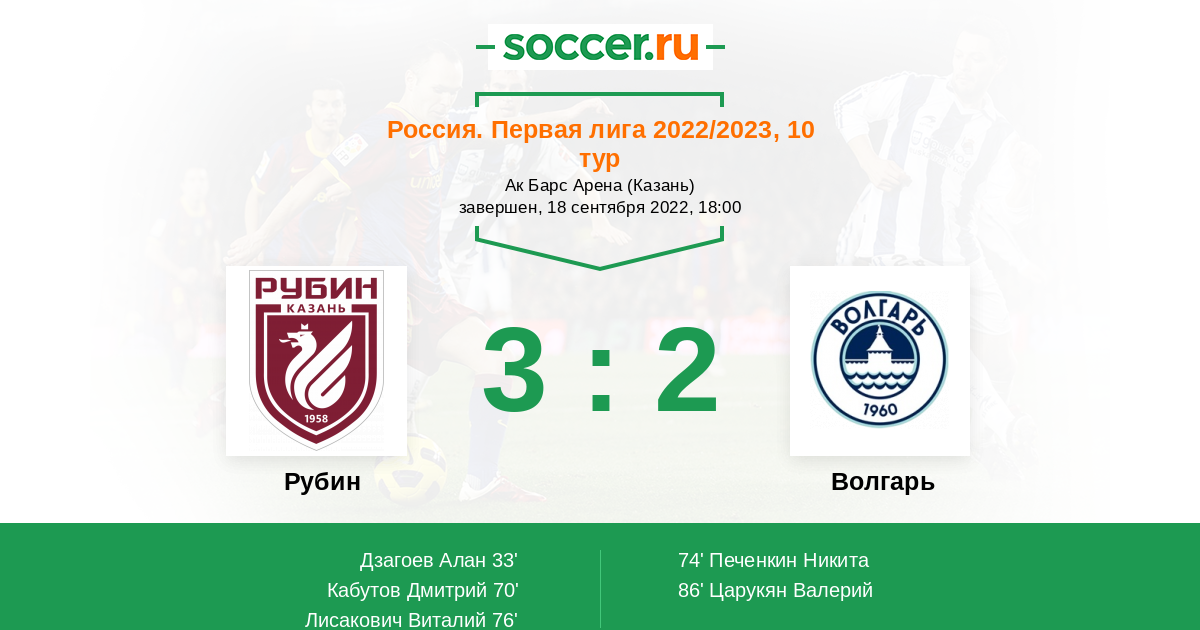 Протокол матча Рубин против Волгарь