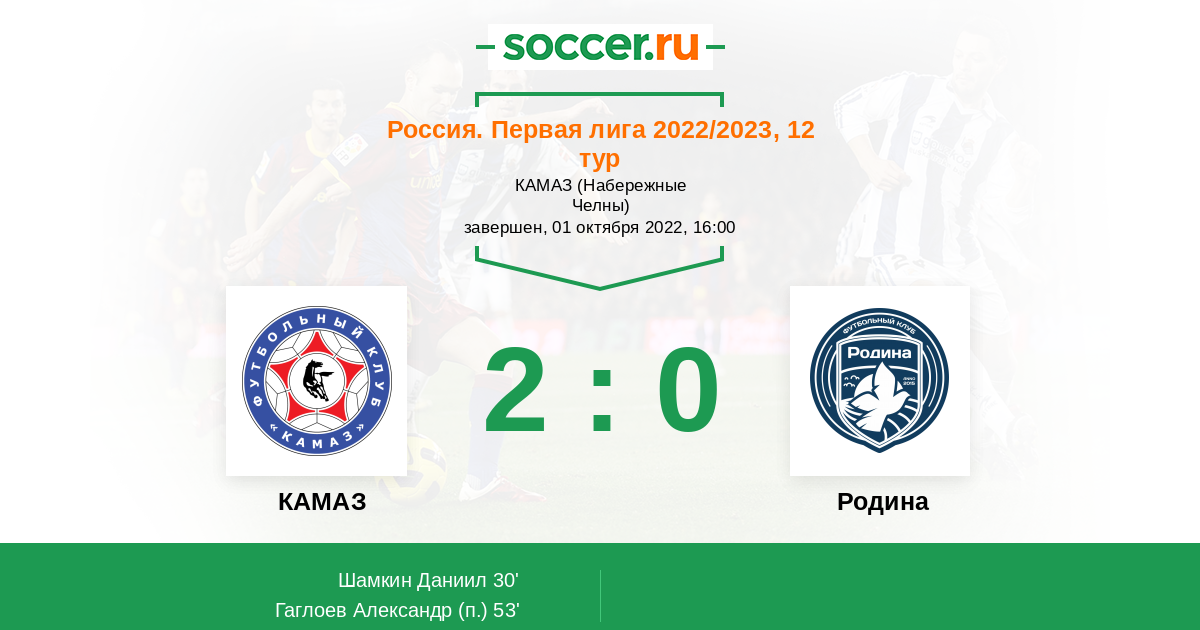 Протокол матча КАМАЗ против Родина