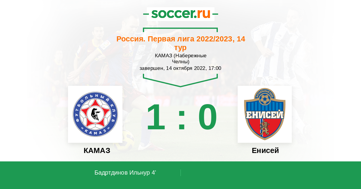Протокол матча КАМАЗ против Енисей