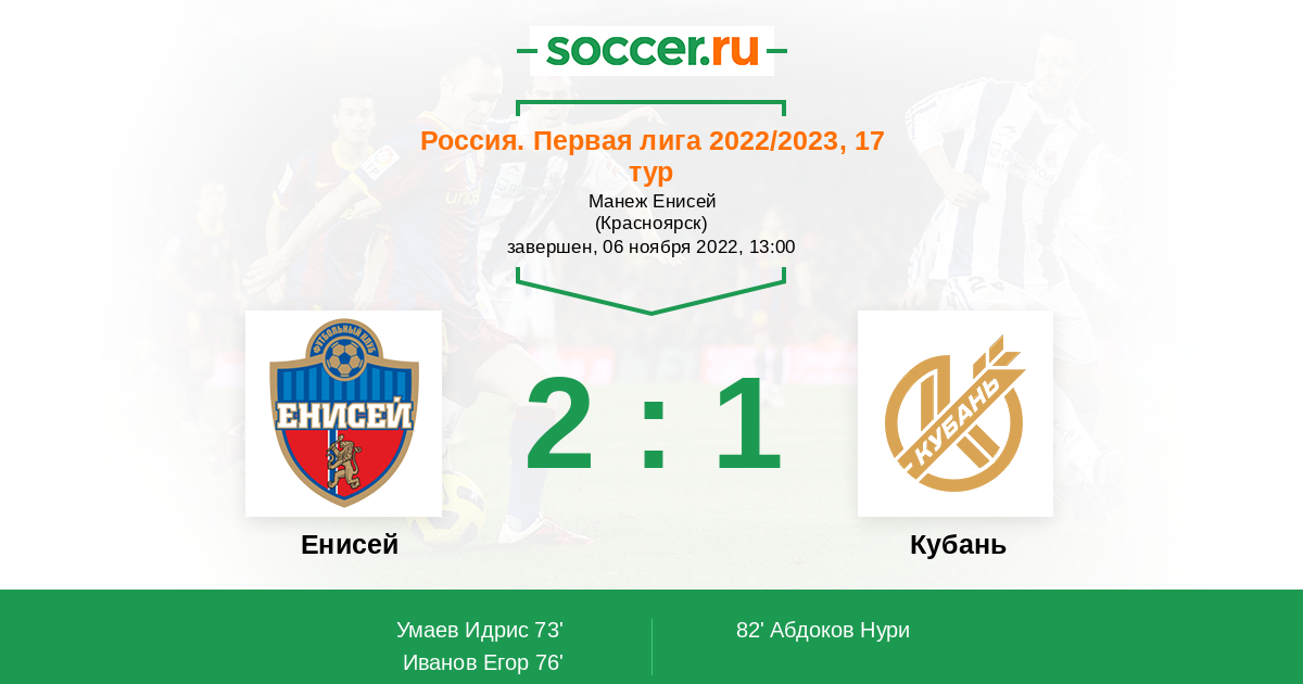 Протокол матча Енисей против Кубань