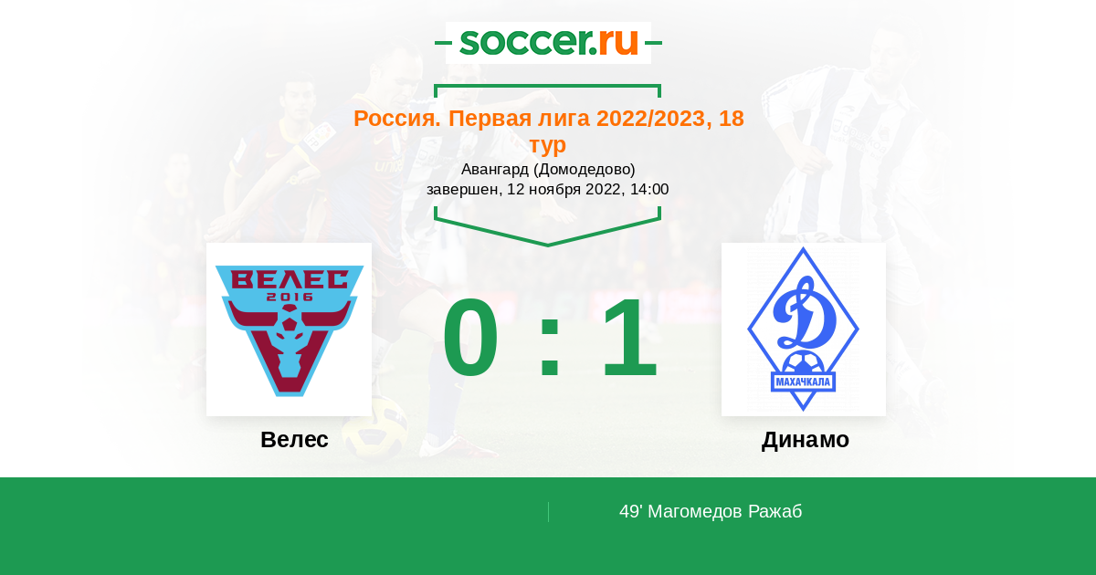 49' (0:1) Магомедов Ражаб (9)
