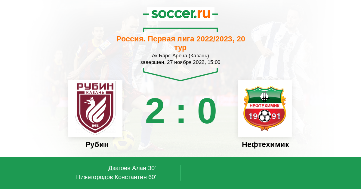 Протокол матча Рубин против Нефтехимик