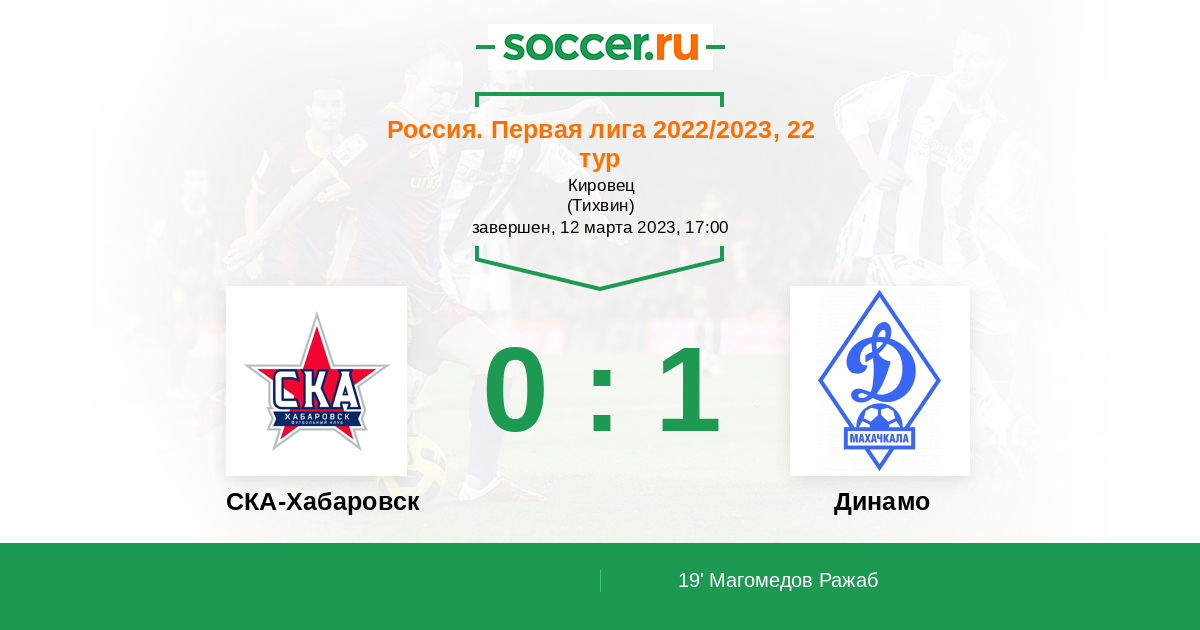 Я думаю что в этом противостоянии более чем явным фаворитом на победу выглядит команда хозяев поля СКА - ХАБАРОВСК , но и команда гостей Динамо Махачкала точно не будет мальчиками для битья . Минимальная победа хозяев поля или ничья .