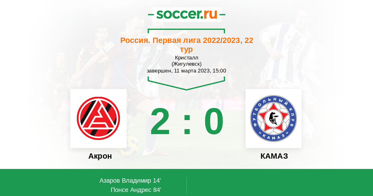 Протокол матча Акрон против КАМАЗ