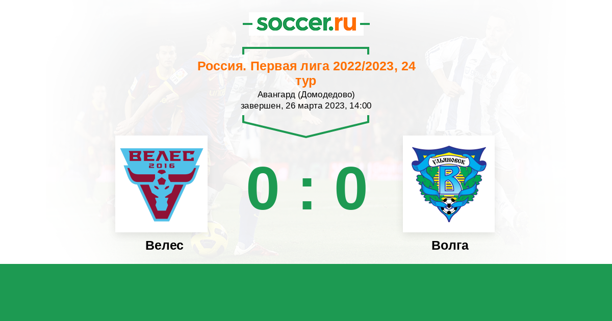 Протокол матча Велес против Волга