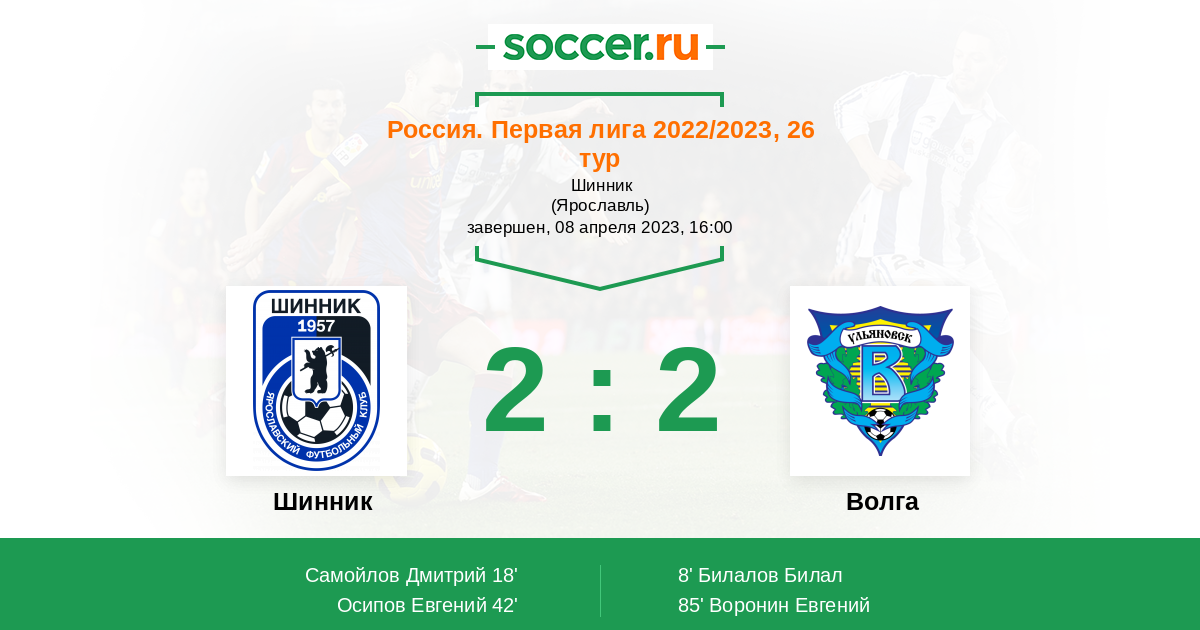 Протокол матча Шинник против Волга