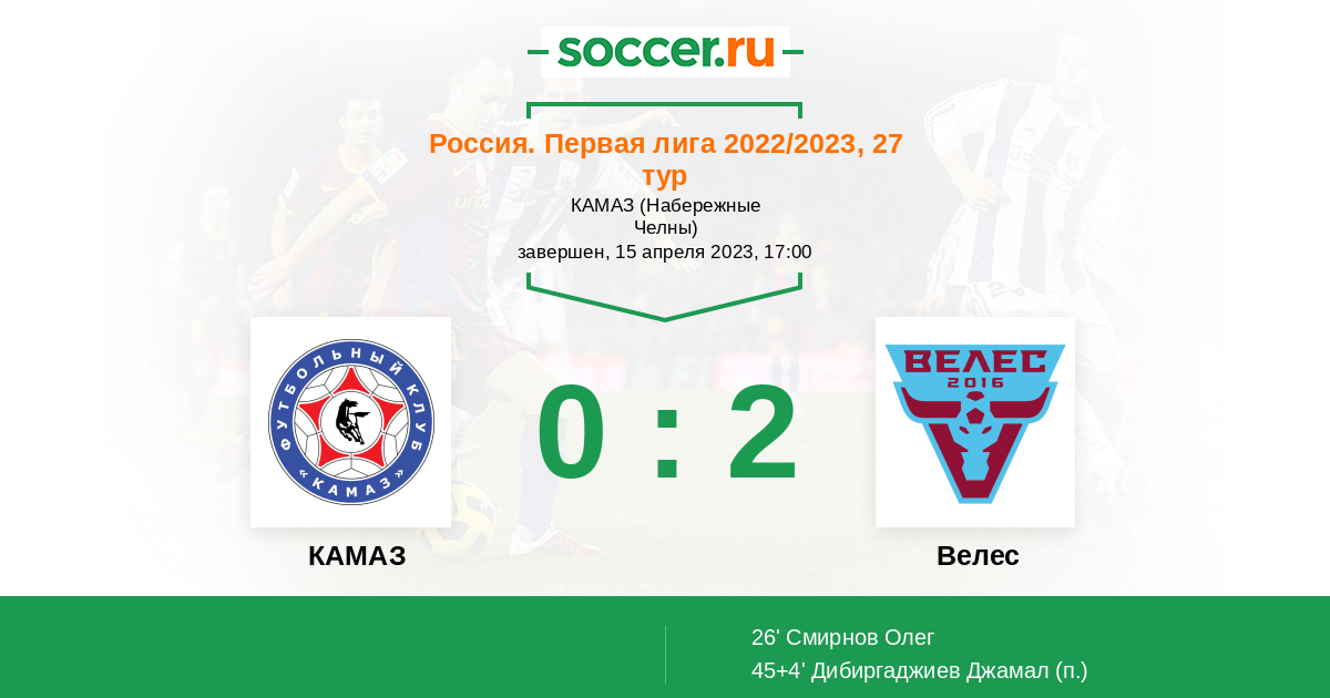 26' (0:1) Смирнов Олег (77) (Саркисян Геворк (99))