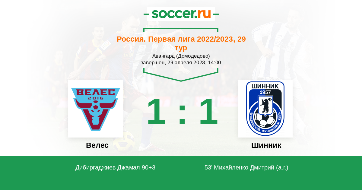 Протокол матча Велес против Шинник