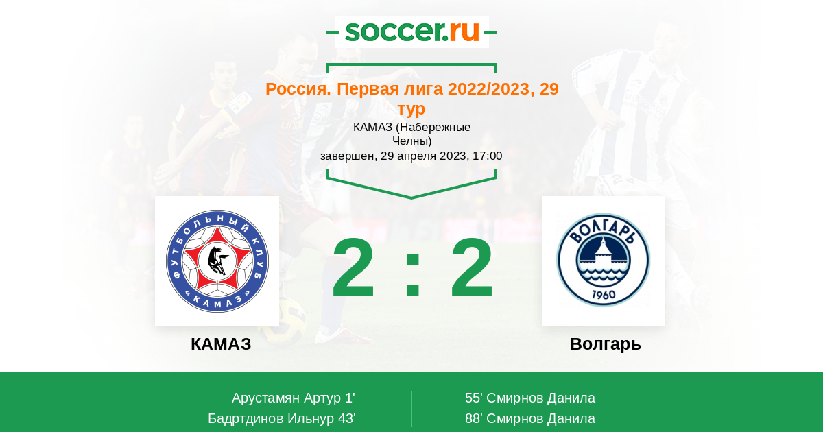 Протокол матча КАМАЗ против Волгарь