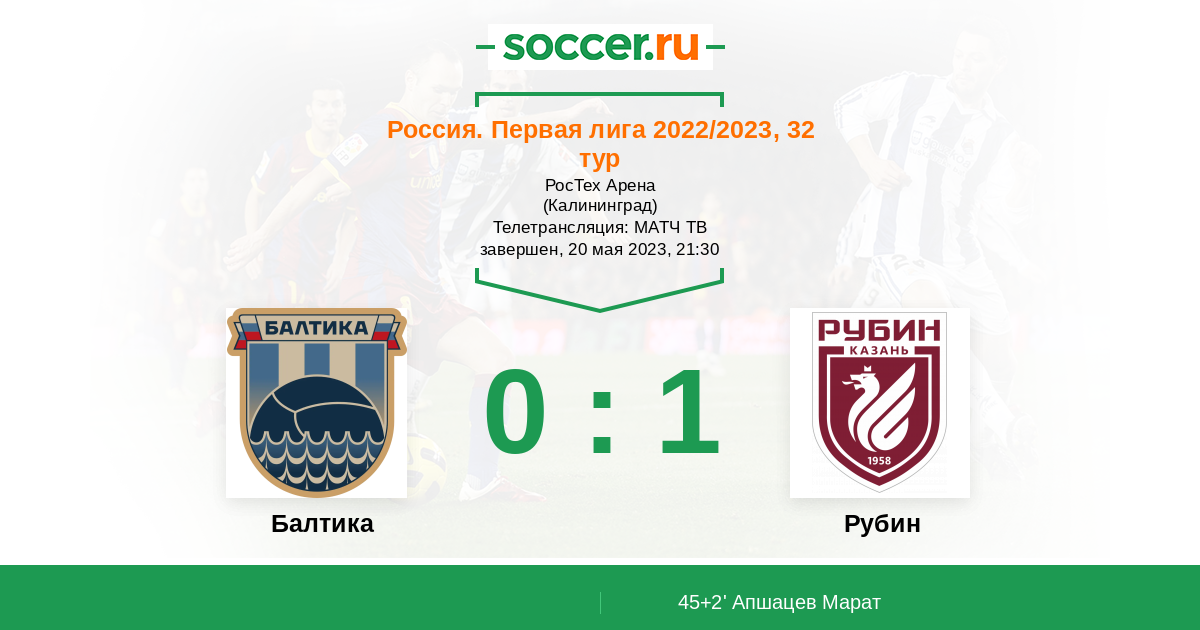 Протокол матча Балтика против Рубин