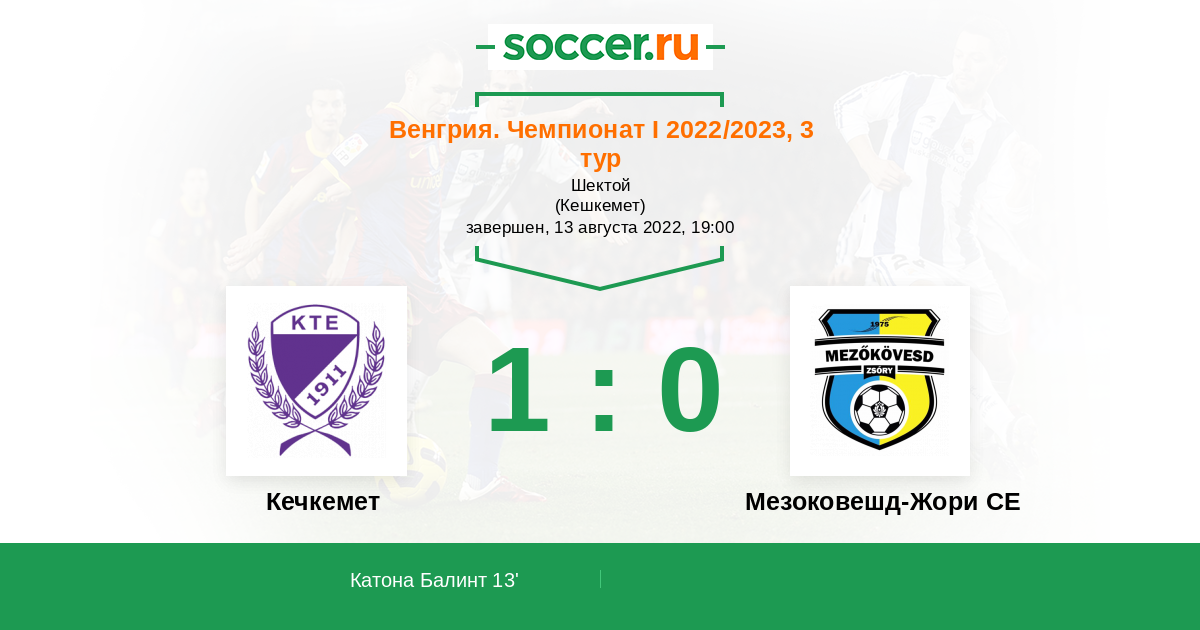 Протокол матча Кечкемет против Мезоковешд-Жори СЕ