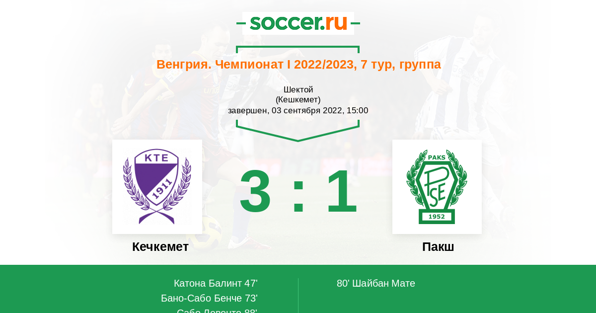 Протокол матча Кечкемет против Пакш