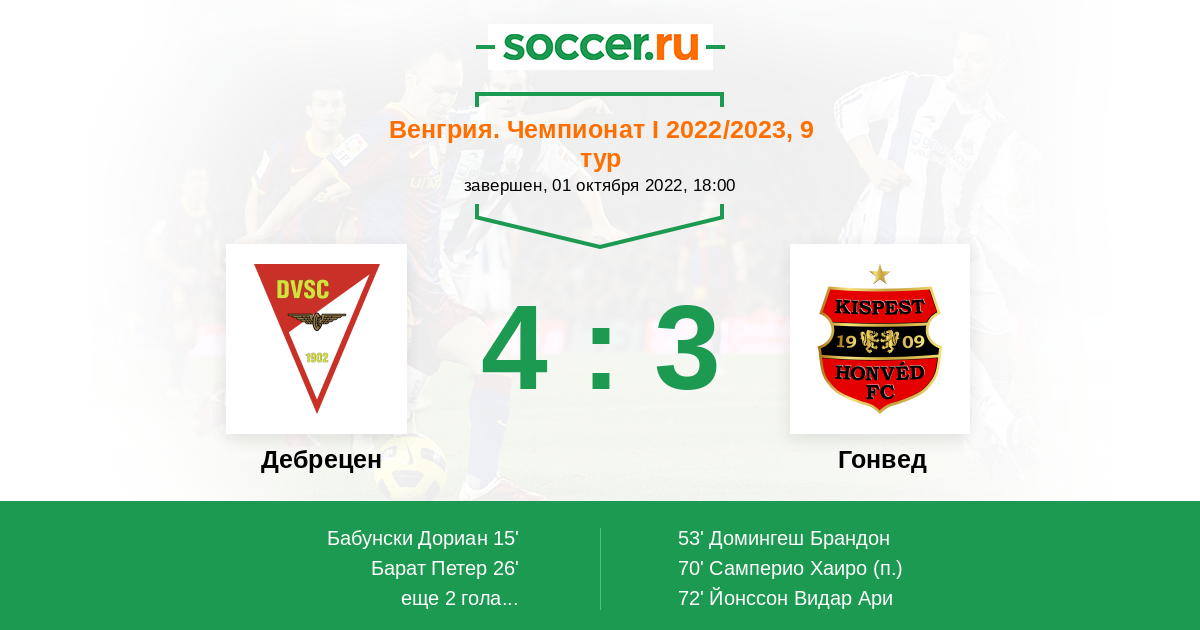 Протокол матча Дебрецен против Гонвед