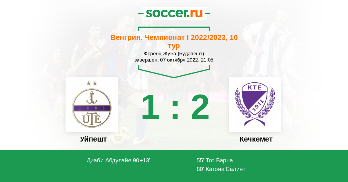 Протокол матча Уйпешт против Кечкемет