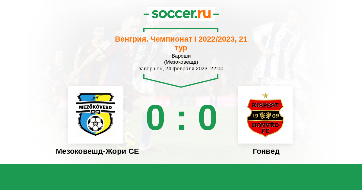 Протокол матча Мезоковешд-Жори СЕ против Гонвед