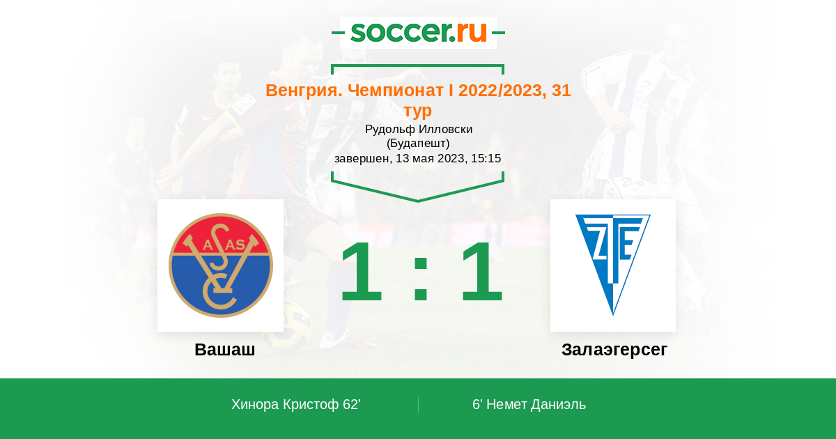 Протокол матча Вашаш против Залаэгерсег
