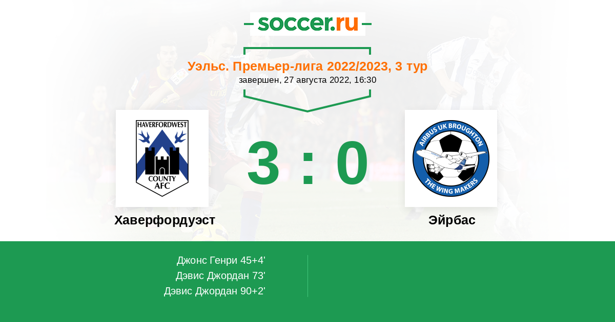 Протокол матча Хаверфордуэст против Эйрбас