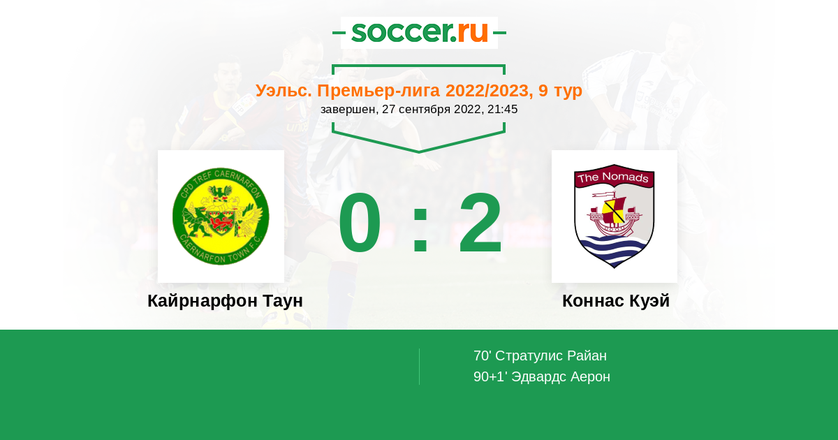 Протокол матча Кайрнарфон Таун против Коннас Куэй
