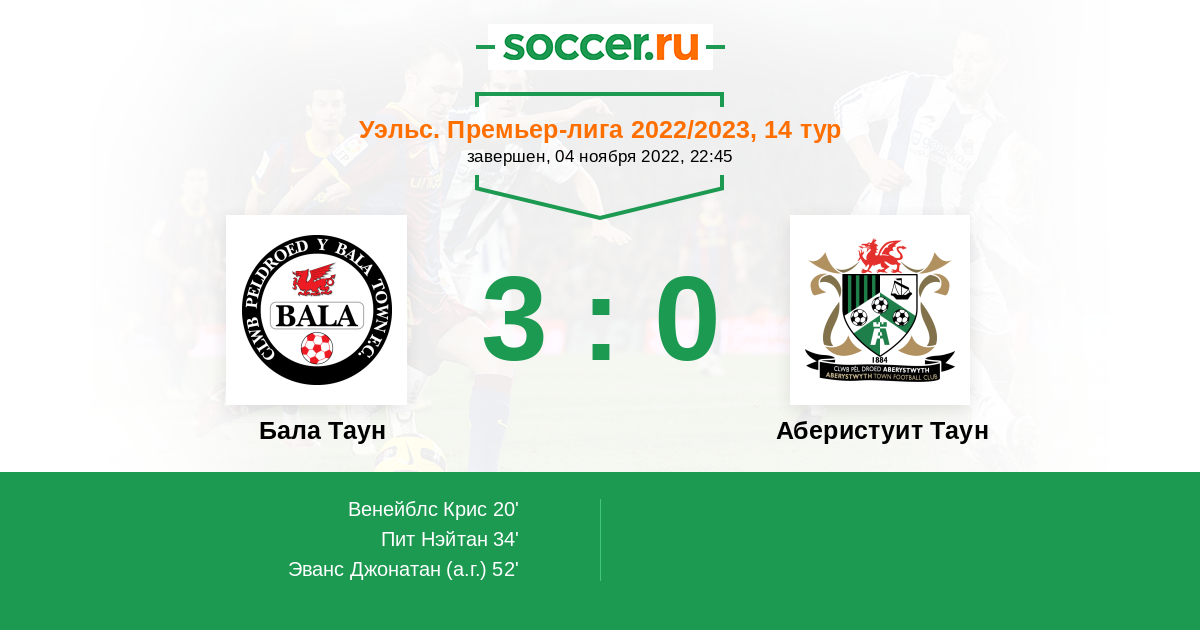 Протокол матча Бала Таун против Аберистуит Таун