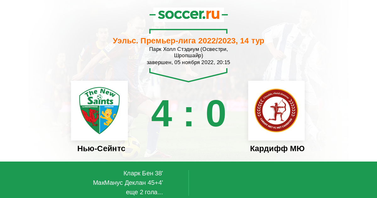 Протокол матча Нью-Сейнтс против Кардифф МЮ