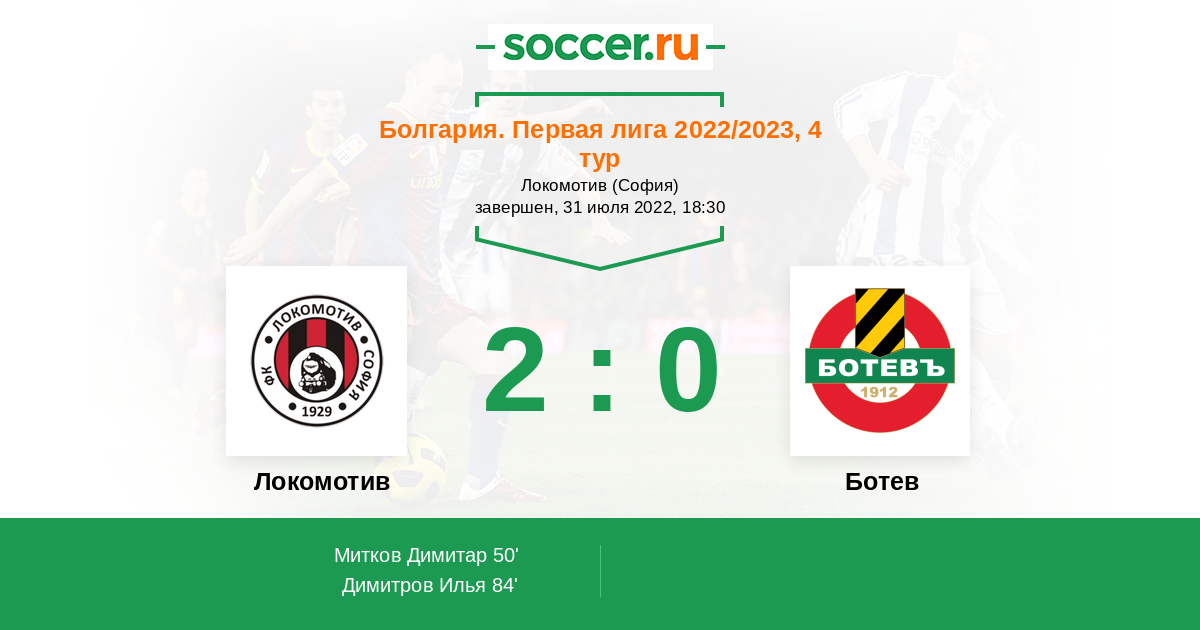Протокол матча Локомотив против Ботев