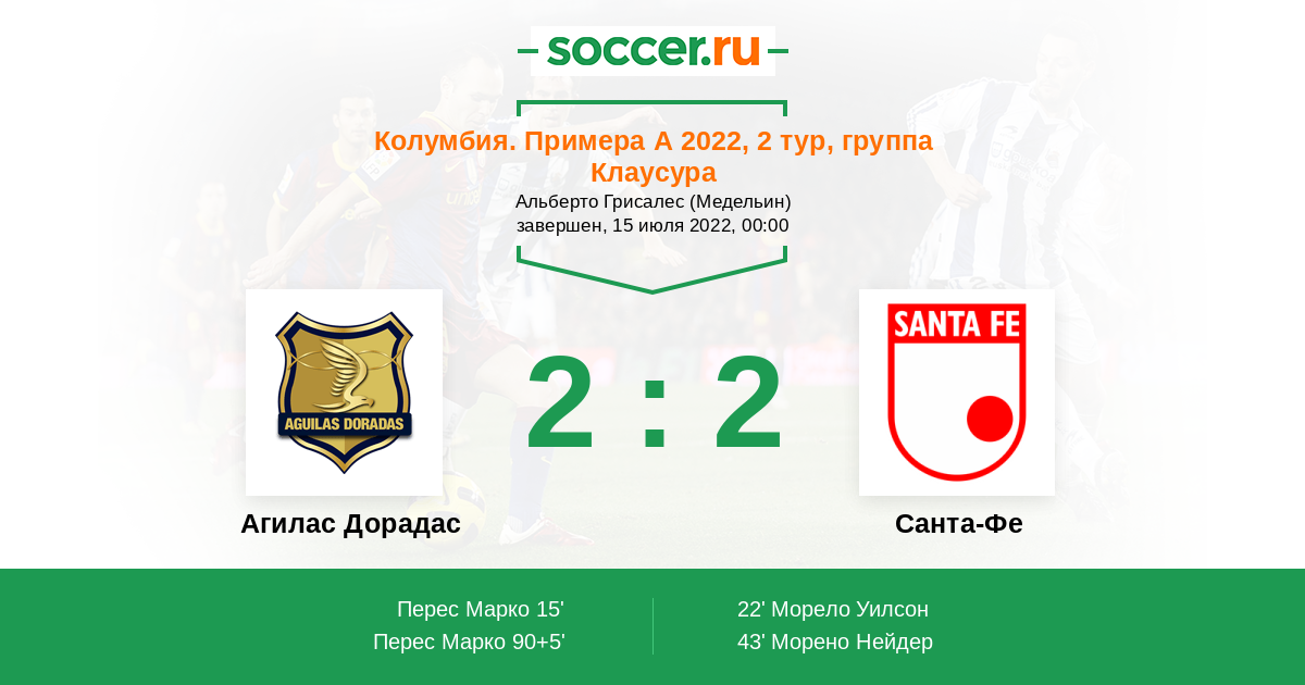 43' (1:2) Морено Нейдер (7) (Ривера Гарольд (20))