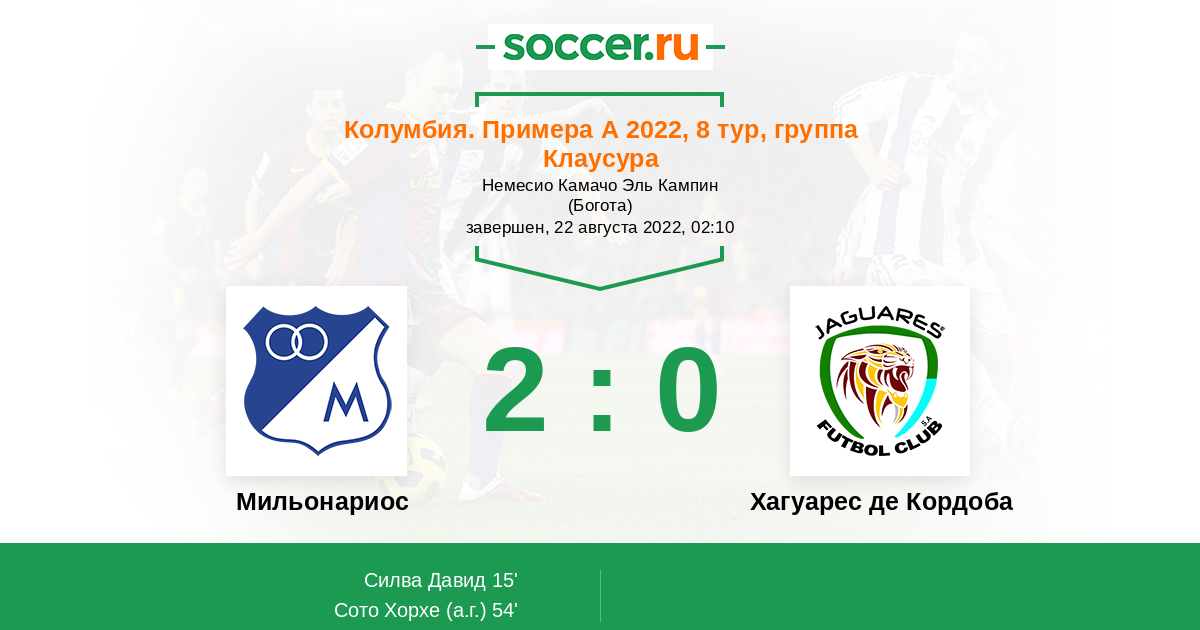 Протокол матча Мильонариос против Хагуарес де Кордоба
