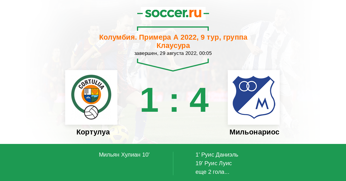 Протокол матча Кортулуа против Мильонариос