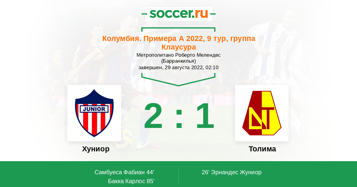 44' (1:1) Самбуеса Фабиан (32) (Инестроса Фреди (8))
