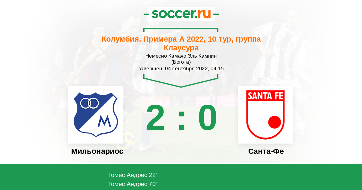 22' (1:0) Гомес Андрес (11) (Перейра Хуан (21))