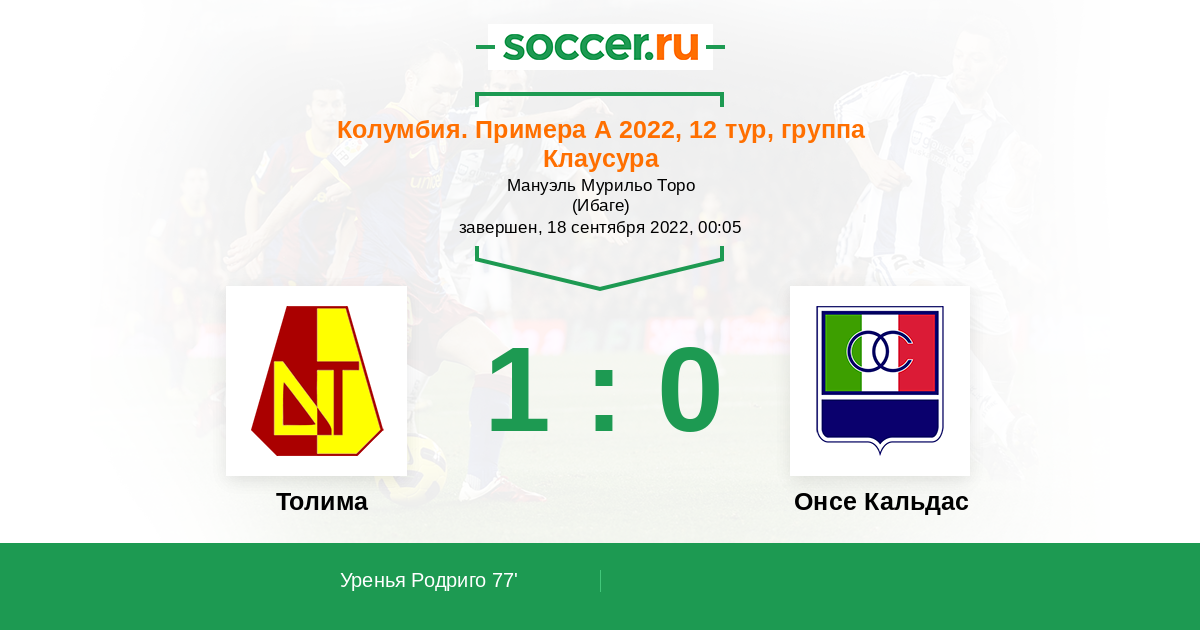 Протокол матча Толима против Онсе Кальдас