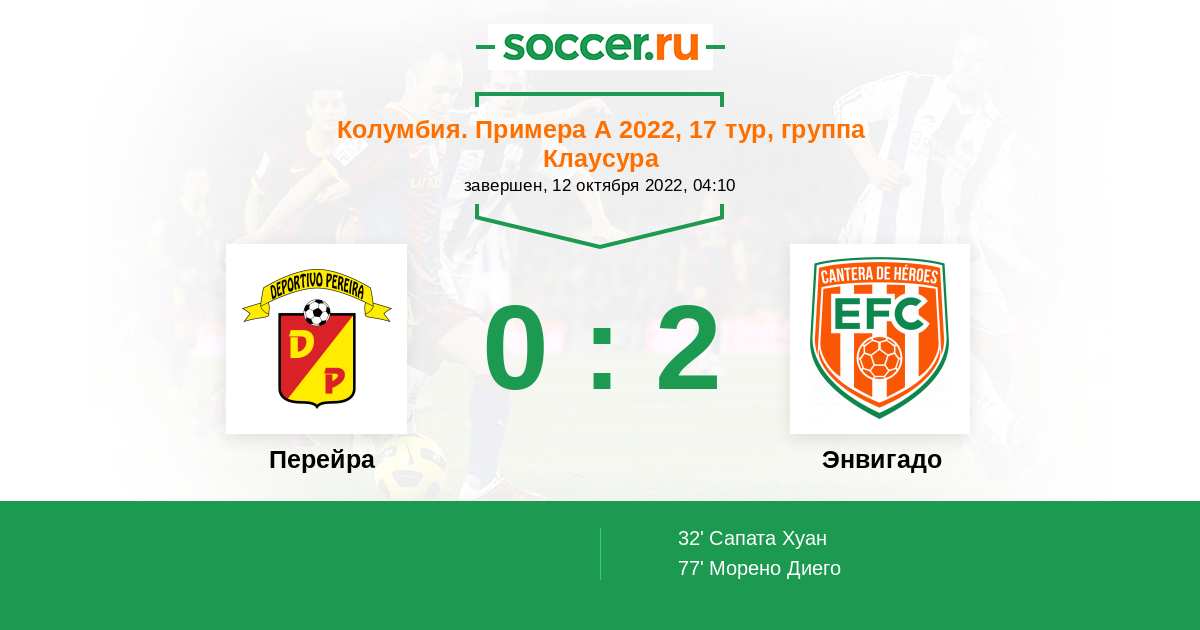 Протокол матча Перейра против Энвигадо
