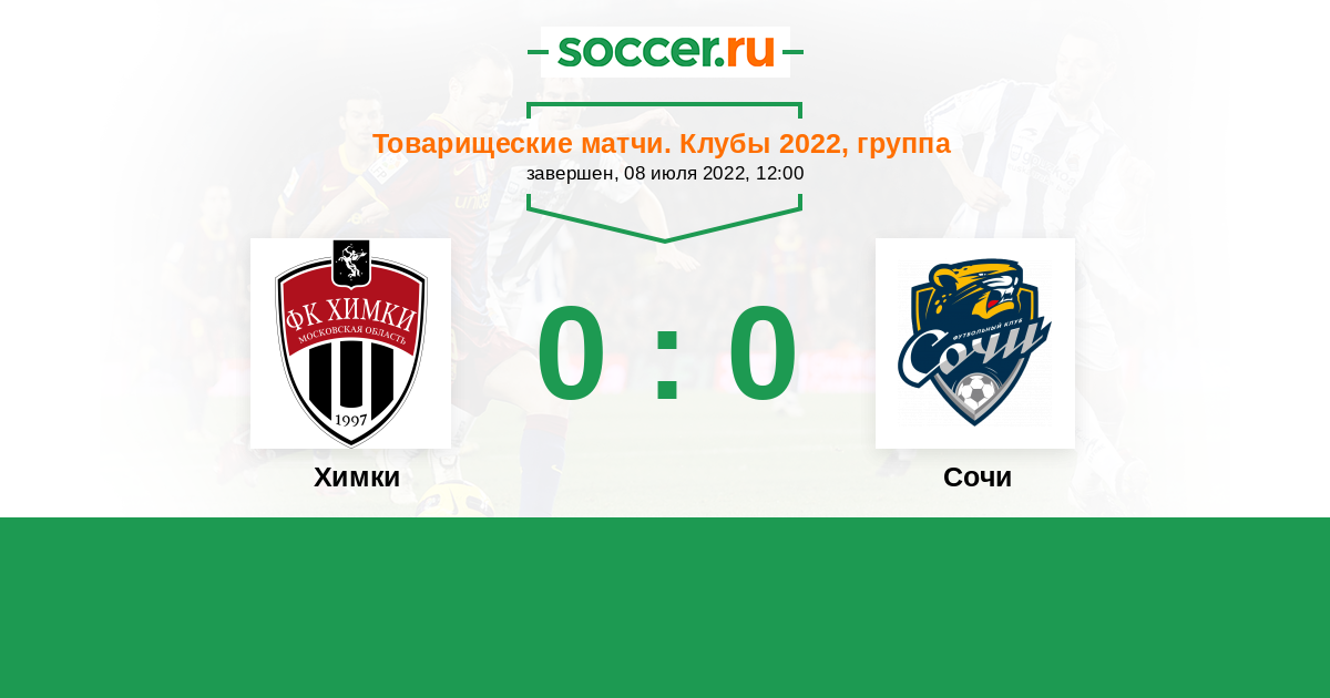 Россия. Премьер-Лига 13.03.2022 Химки Логотип футбольный клуб Химки 0:0 Логотип футбольный клуб Сочи Сочи