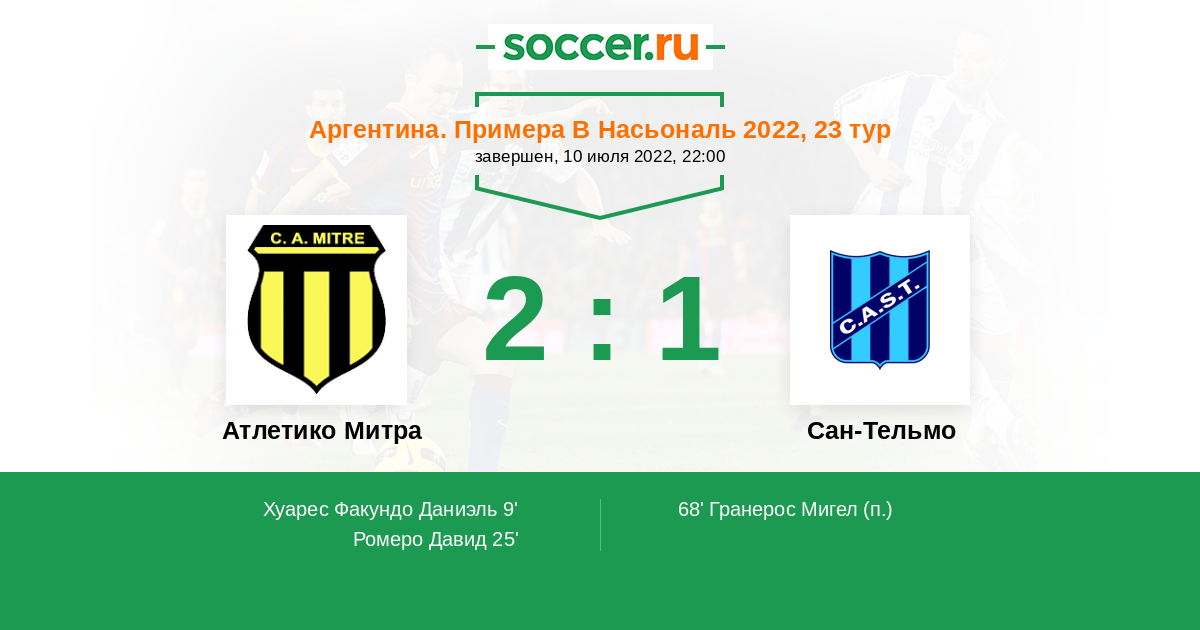 Протокол матча Атлетико Митра против Сан-Тельмо