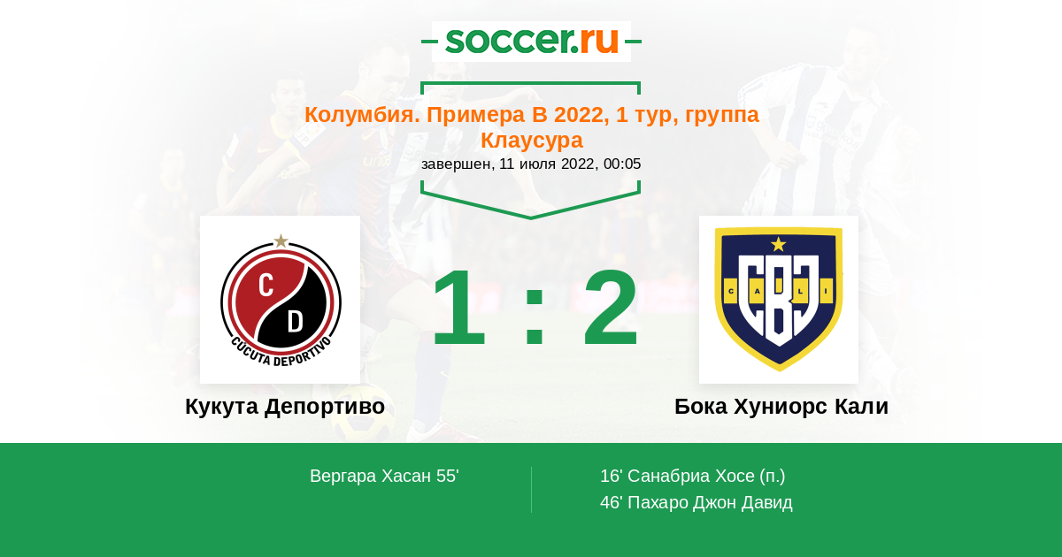 Протокол матча Кукута Депортиво против Бока Хуниорс Кали