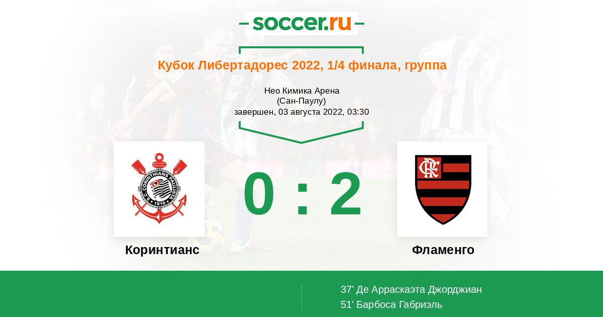 На первой стадии плей-офф «стервятники» легко справились с колумбийской «Толимой», дважды ее обыграв — 1:0 на выезде и аж 7:1 на своей территории. В чемпионате Бразилии команда идет на пятой позиции в турнирной таблице, отставая от предстоящего противника на пять баллов. Накануне этой игры «красно-черные» добились домашней разгромной победы со счетом 4:1 над одним из середняков лиги.