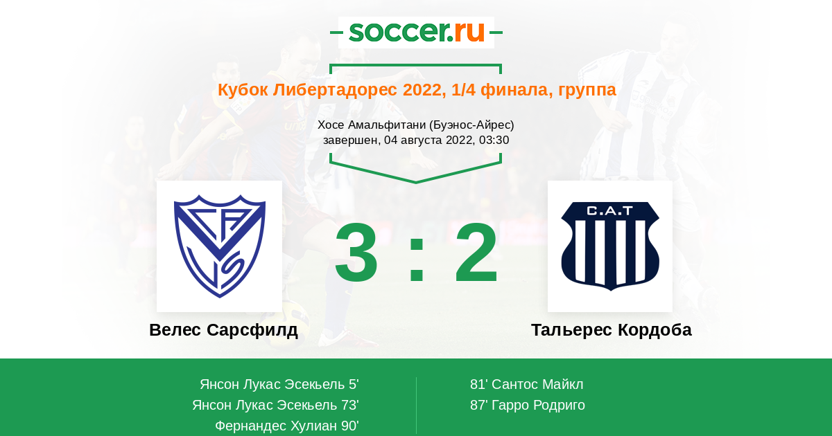 Протокол матча Велес Сарсфилд против Тальерес Кордоба