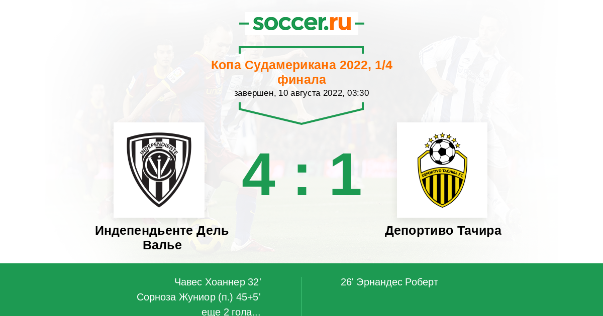 Протокол матча Индепендьенте Дель Валье против Депортиво Тачира