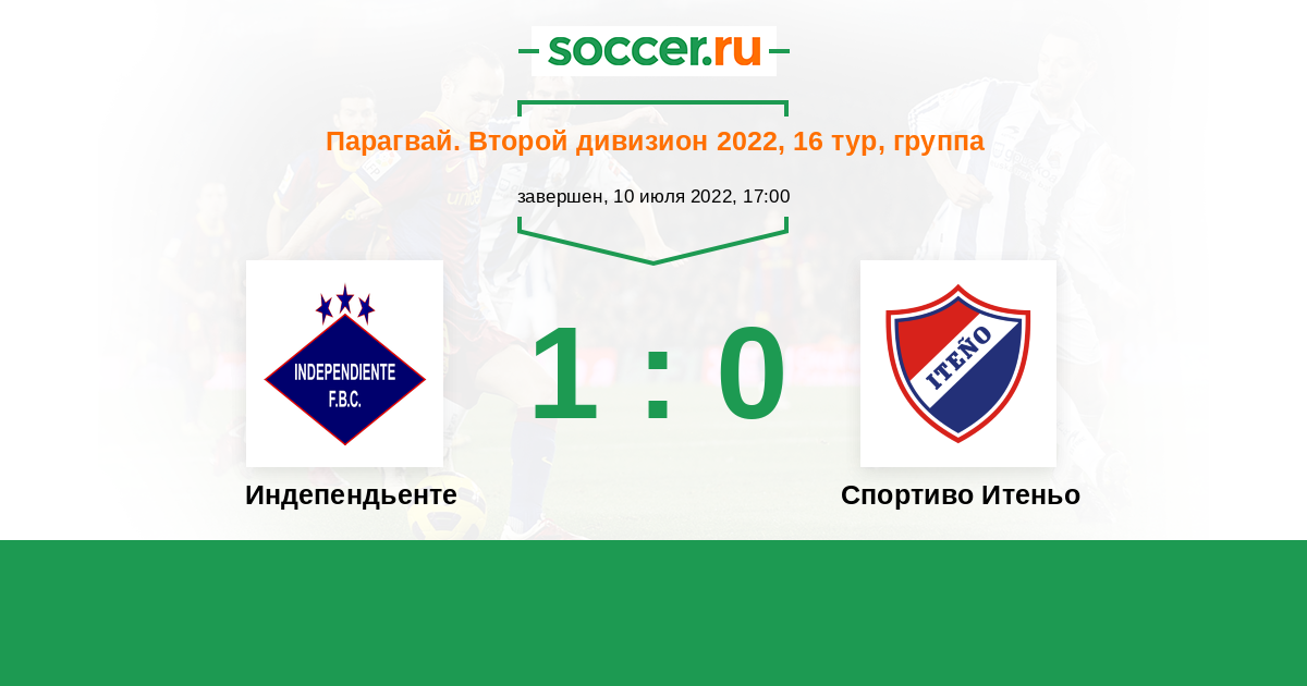 Парагвай. Второй дивизион 03.04.2022 Спортиво Итеньо Логотип футбольный клуб Спортиво Итеньо (Ита) 0:2 Логотип футбольный клуб Индепендьенте (Луке) Индепендьенте