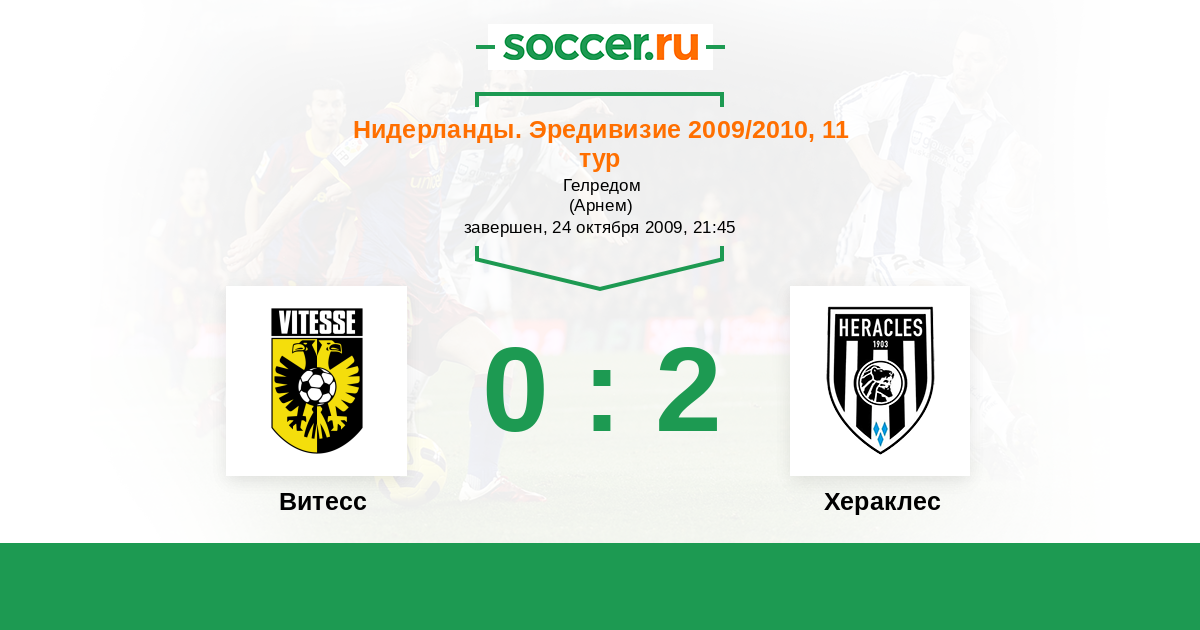 Нидерланды. Эредивизи 20.11.2010 Витесс Логотип футбольный клуб Витесс (Арнем) 2:0 Логотип футбольный клуб Хераклес (Алмело) Хераклес