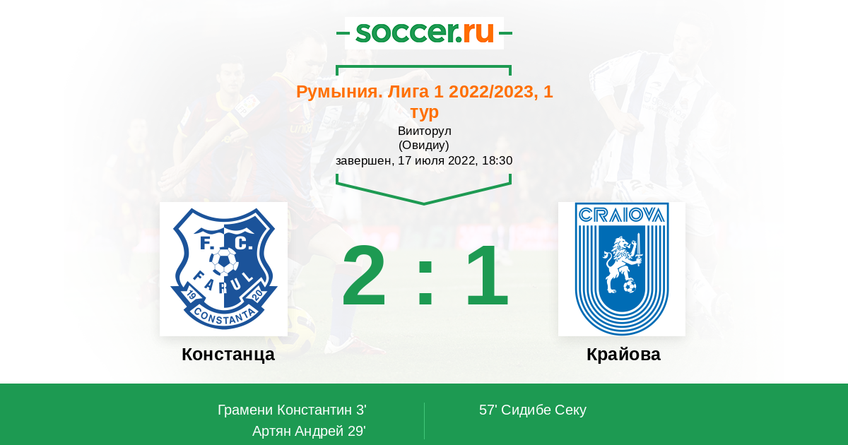 Протокол матча Фарул против Крайова