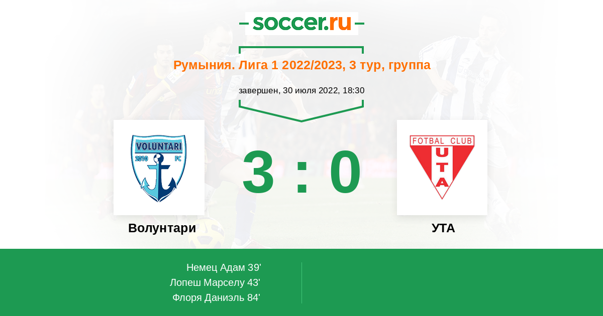 Протокол матча Волунтари против УТА