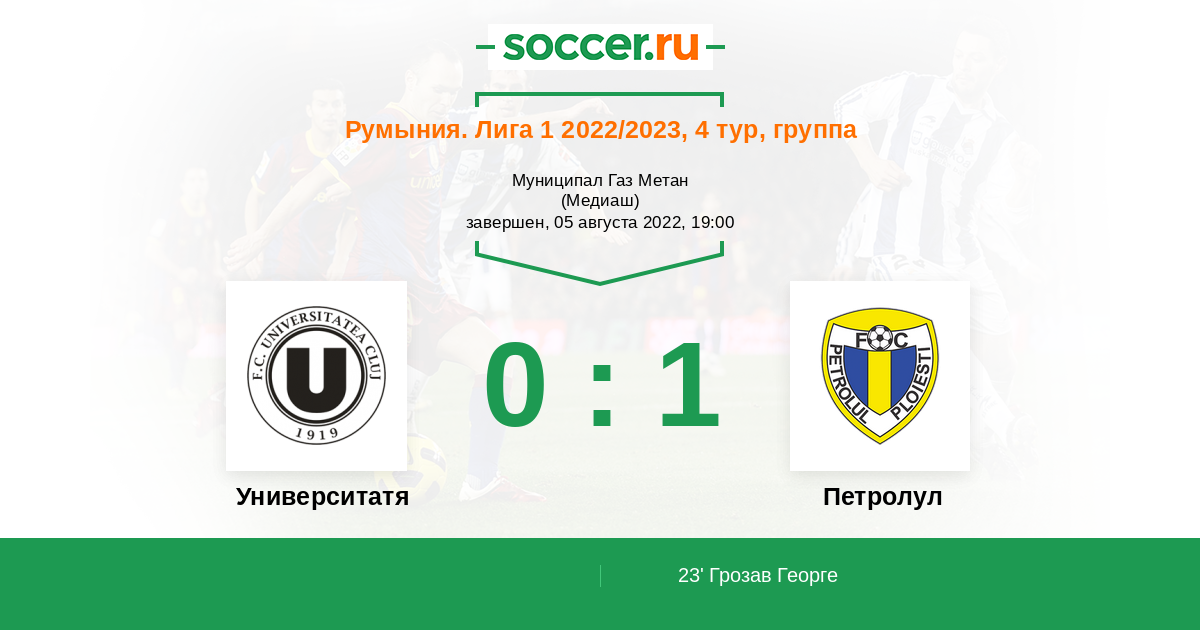 23' (0:1) Грозав Георге (7) (Хужа Мариан (2))