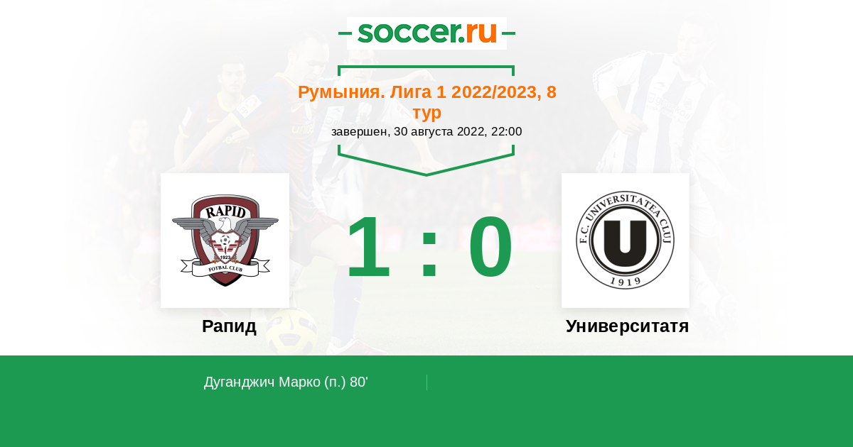 Протокол матча Рапид против Университатя Клуж