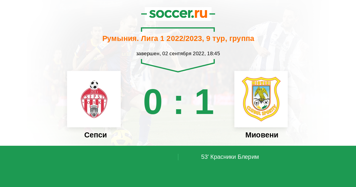 Протокол матча Сепси против Миовени