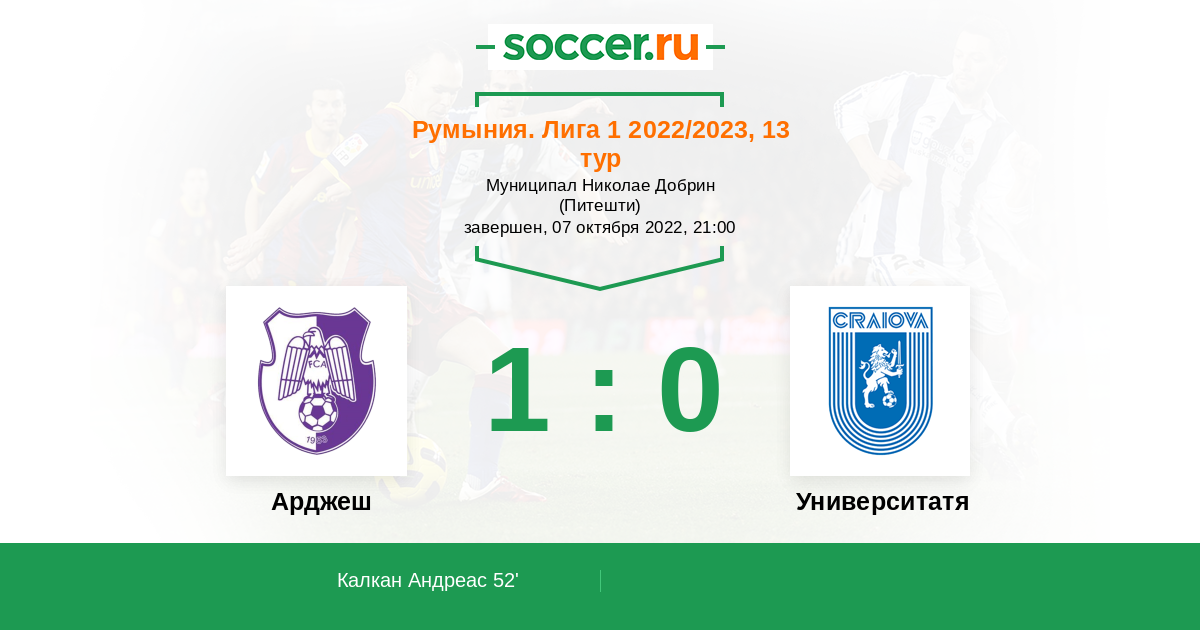 Протокол матча Арджеш против Университатя Крайова