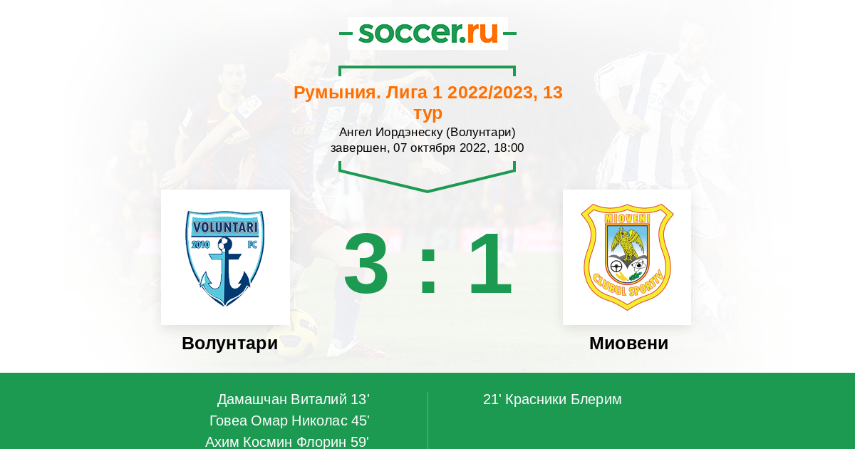 13' (1:0) Дамашчан Виталий (9) (Говеа Омар Николас (16))